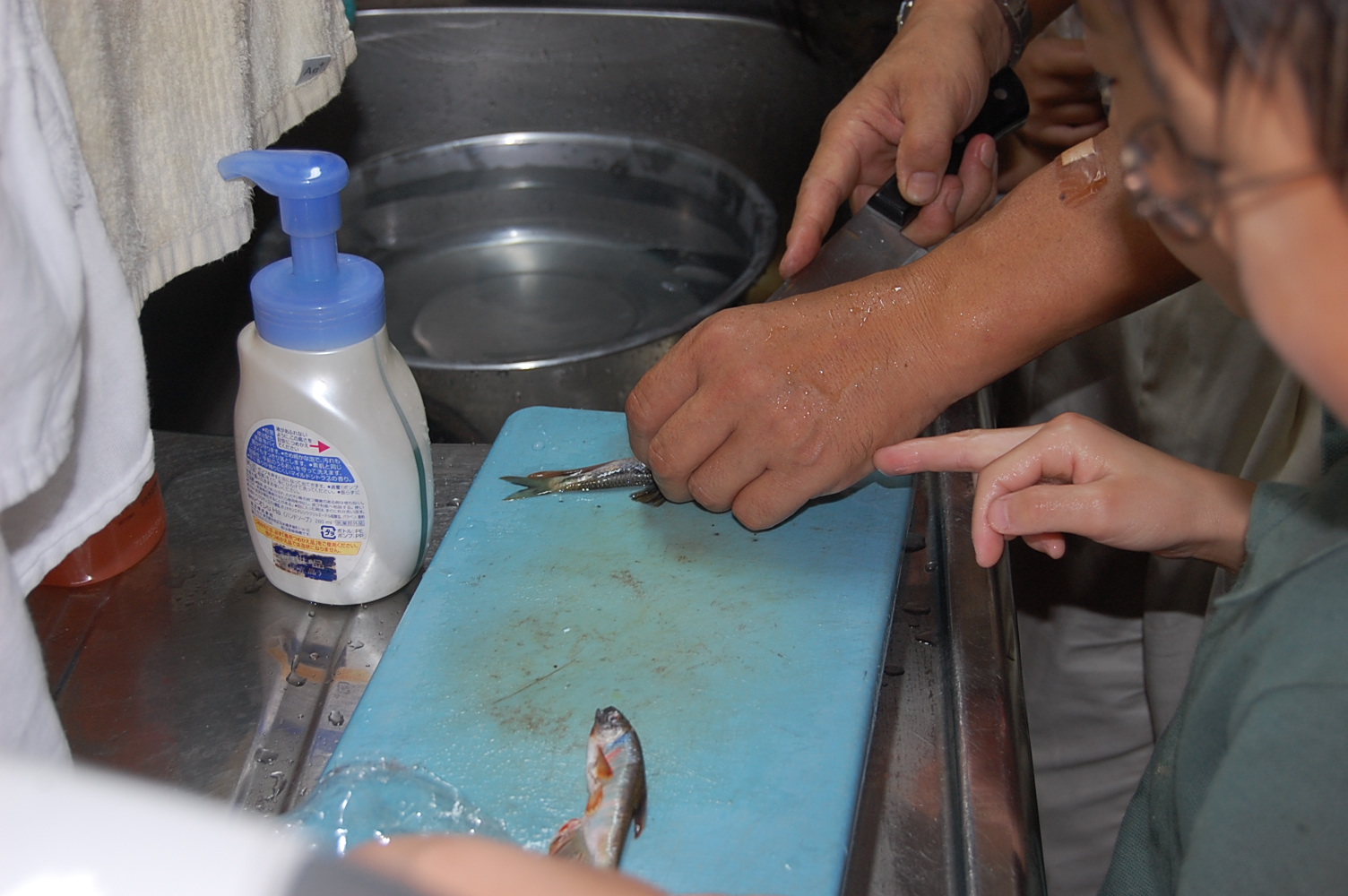 なぜか魚をさばく藤賀前園長先生。さすがです。