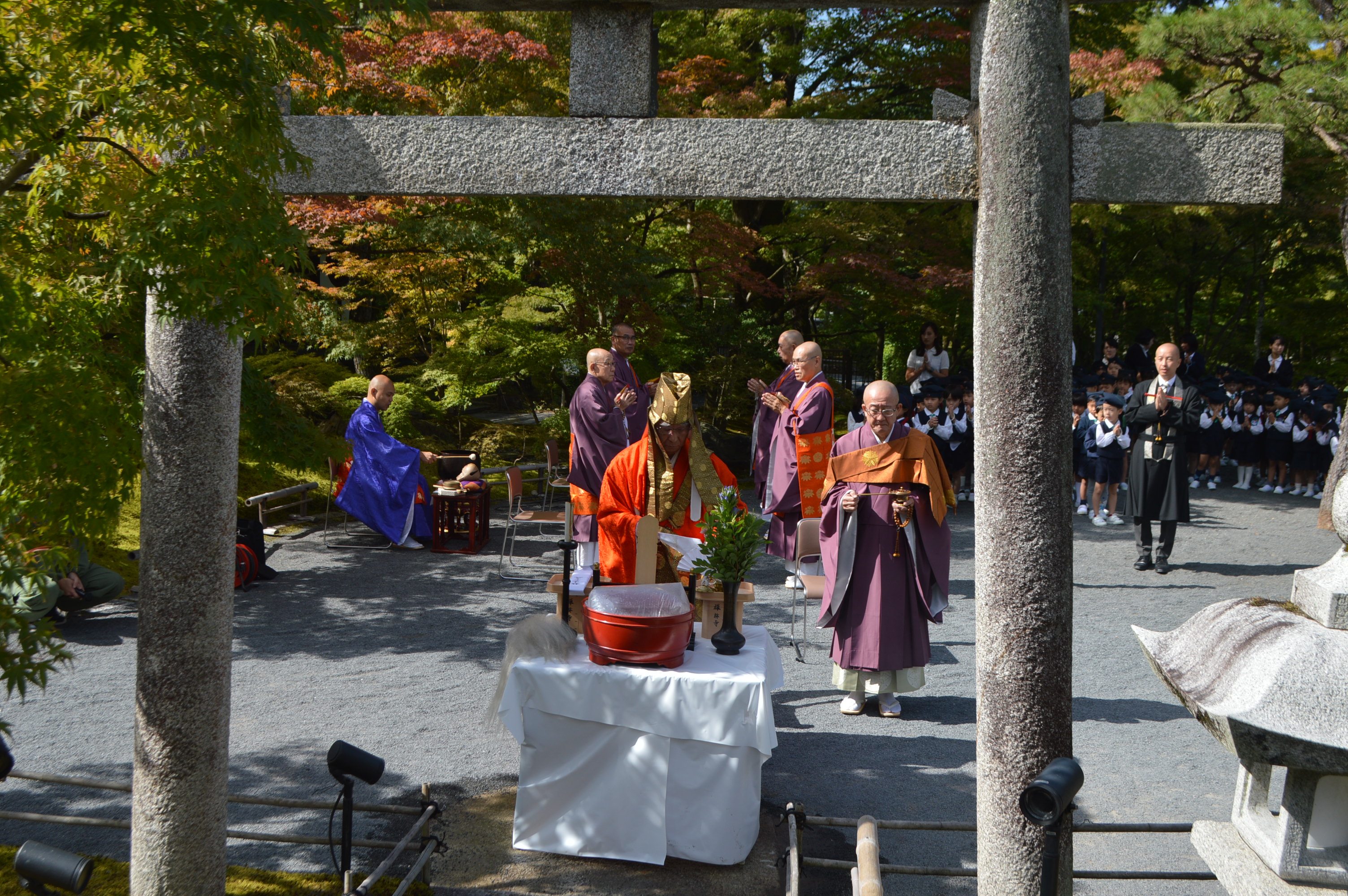 『放生会』を行いました。 永観堂幼稚園は命を大切にする教育をしています。私たちは日頃から生きていくために、 動物や植物の命をいただいて生活をしています。 毎年、鯉を放流し、命の尊さ・大切さを考え、生かされていることに感謝をしています。