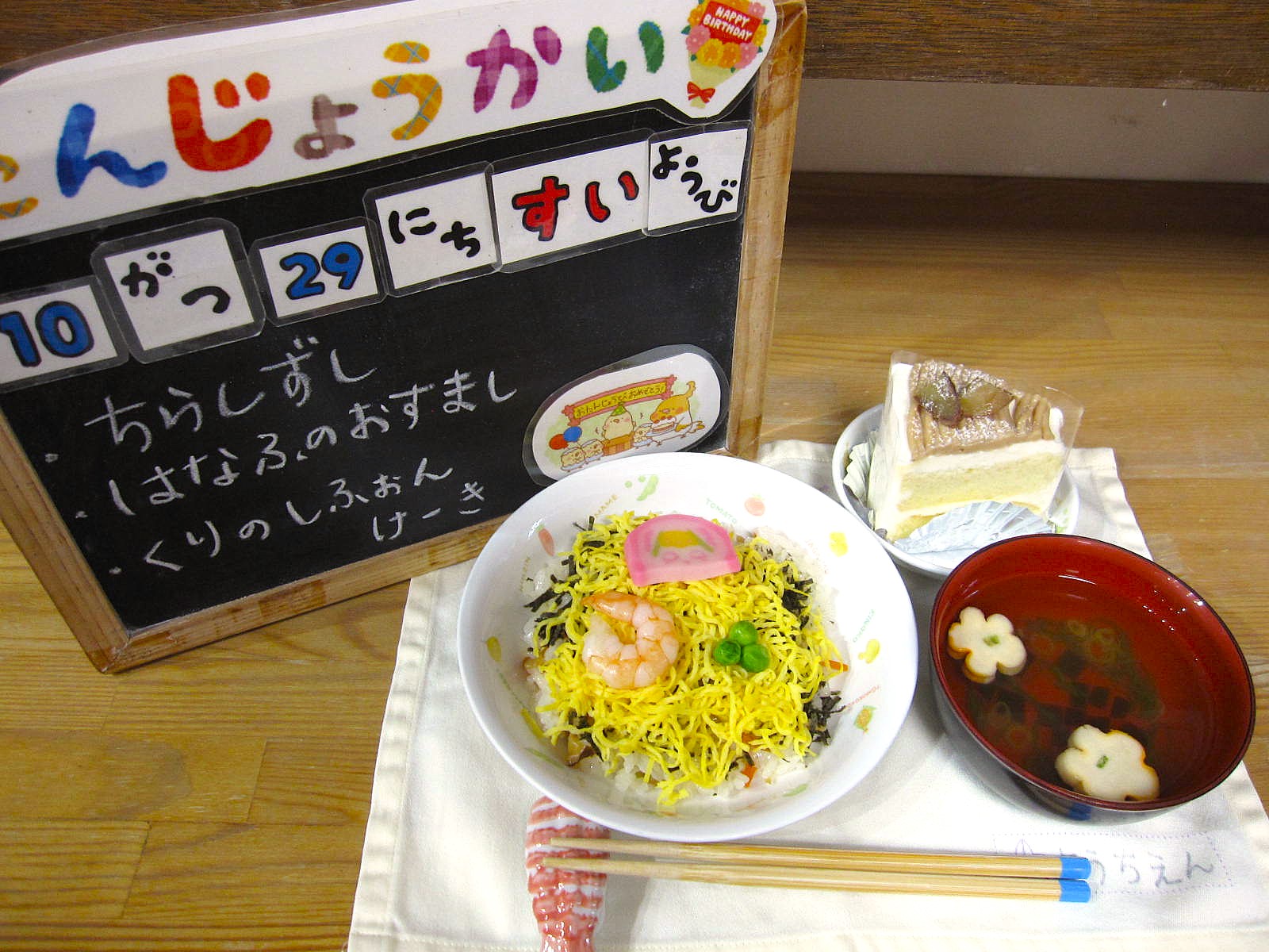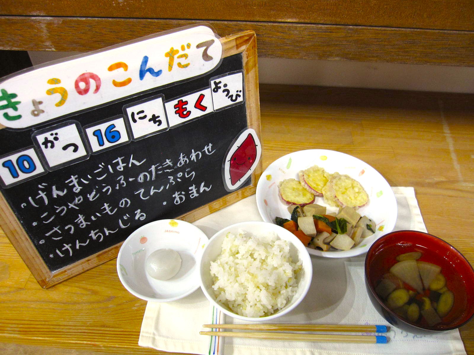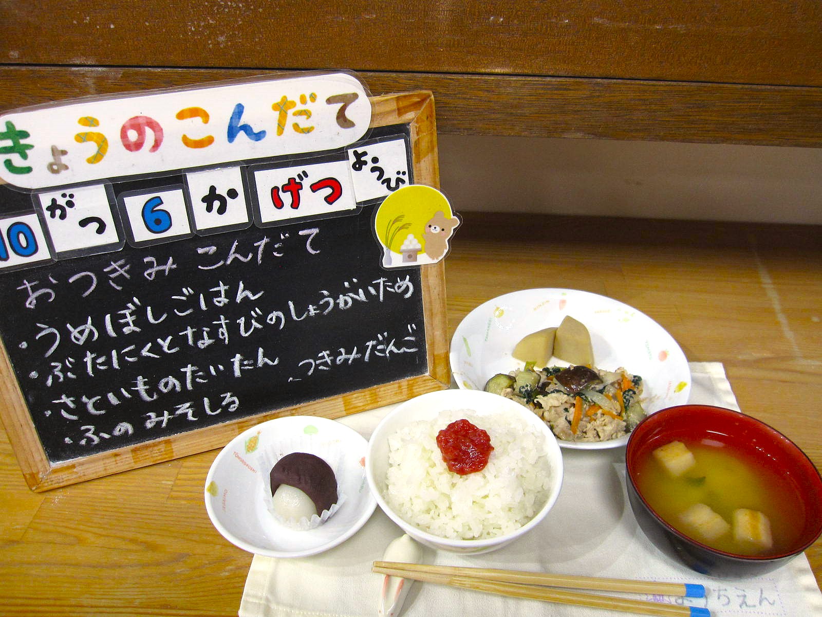 6日。十五夜献立です。秋の収穫に感謝して、お給食をいただきました。