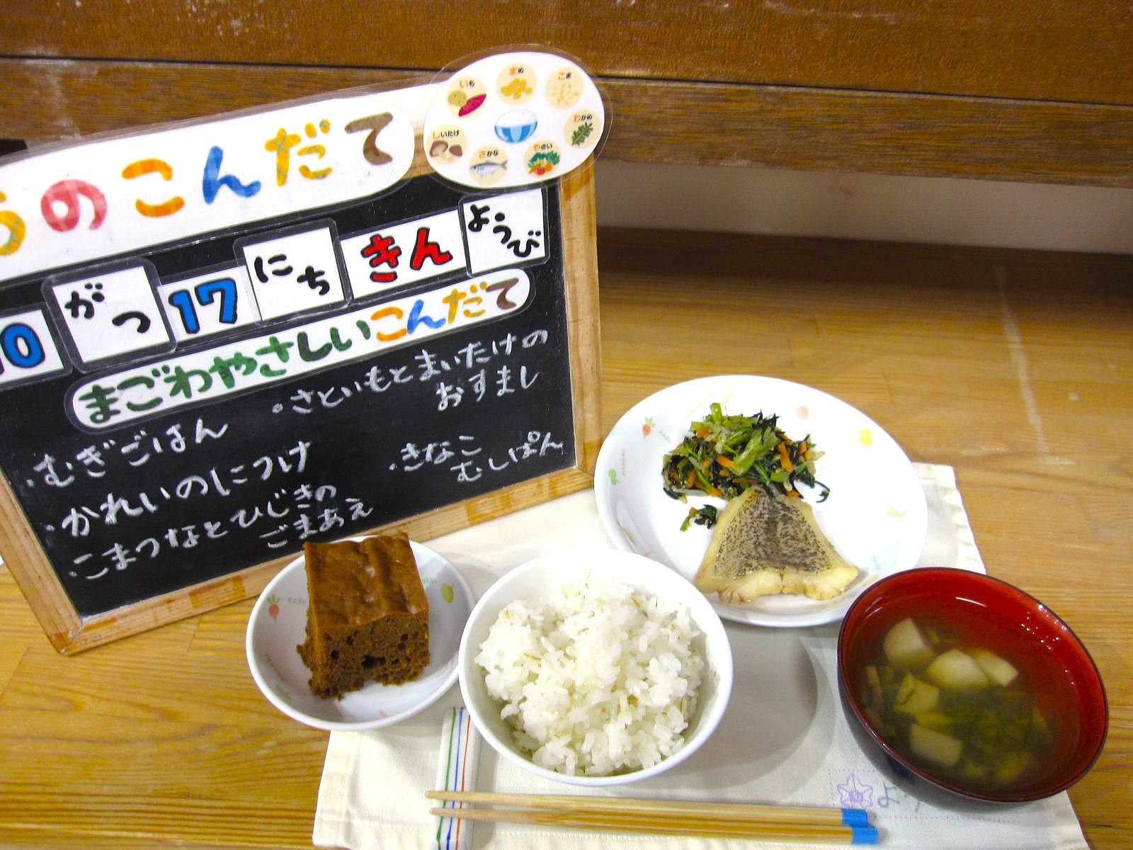 17日。まごわやさしい献立です。鰈は身がほろほろで食べやすいです。