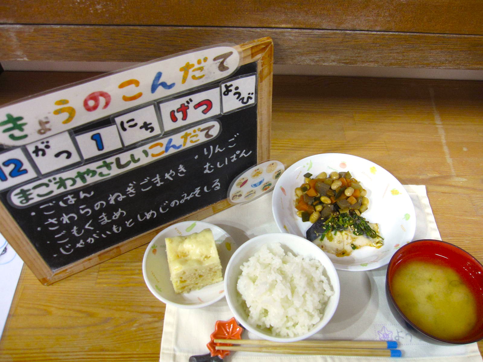 1日。まごわやさしい献立です。バランスの良い食事を心掛けましょう。