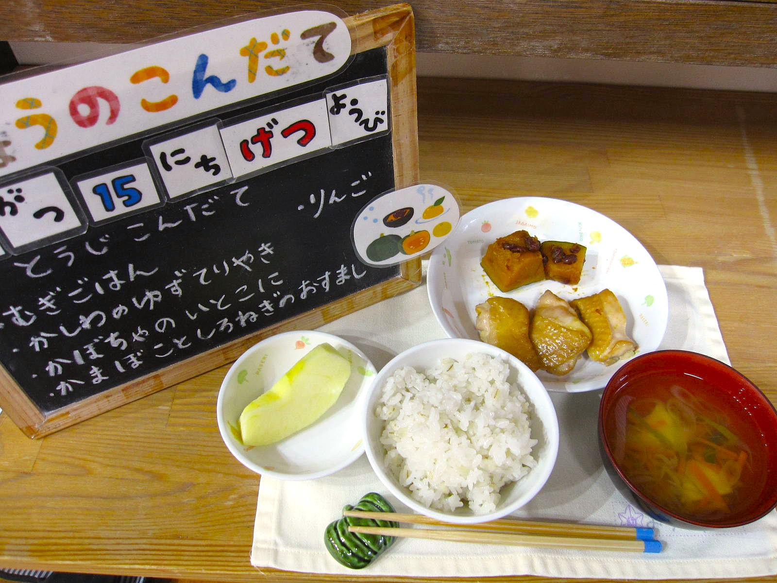 15日。冬至献立です。"ん”のつく食べ物を食べて元気に過ごしましょう。